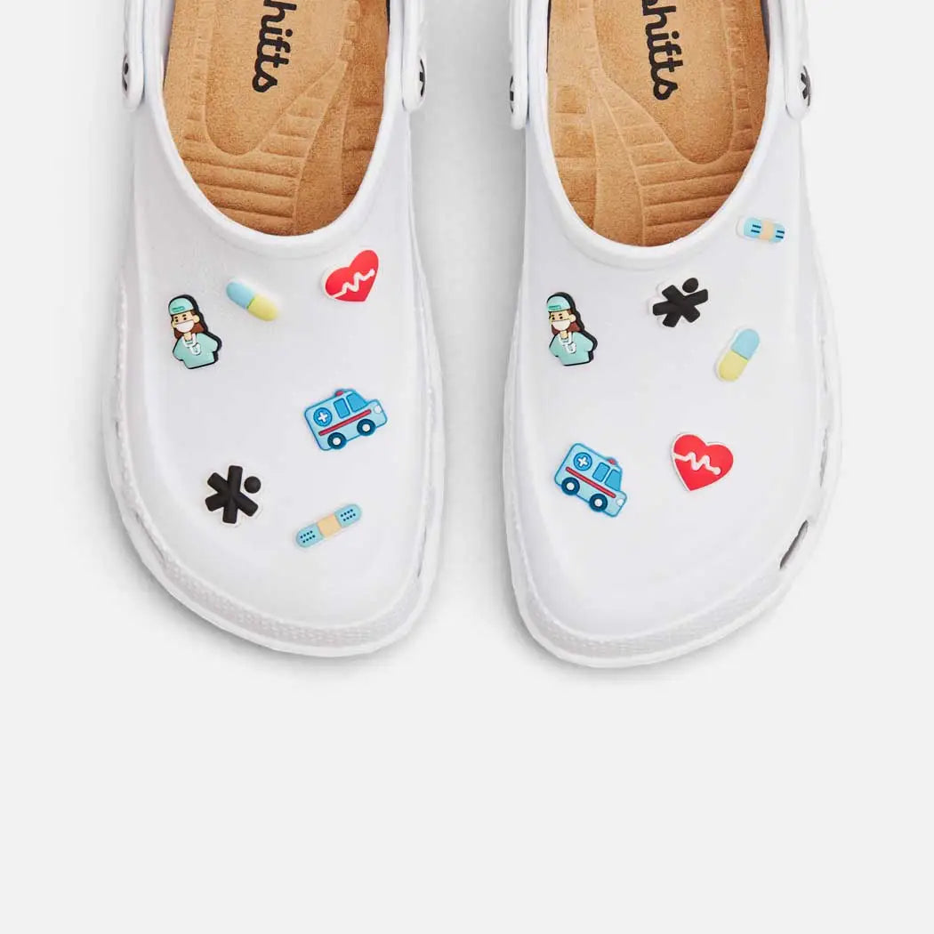 Versuche, in deinen Clogs zu laufen, um zu sehen, wo sie sich beim Gehen biegen/knicken. Sticker, die auf den Falten platziert werden, werden wahrscheinlich nicht halten.